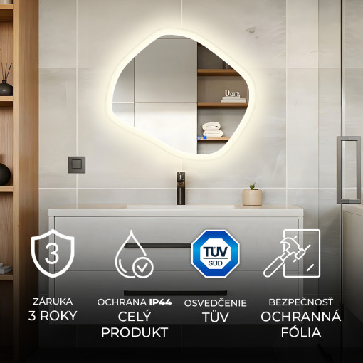 84x74 cm Kúpeľňové zrkadlo s osvetlením, 84x74cm, dvojfarebné, dotykový vypínač, vyhrievacia podložka